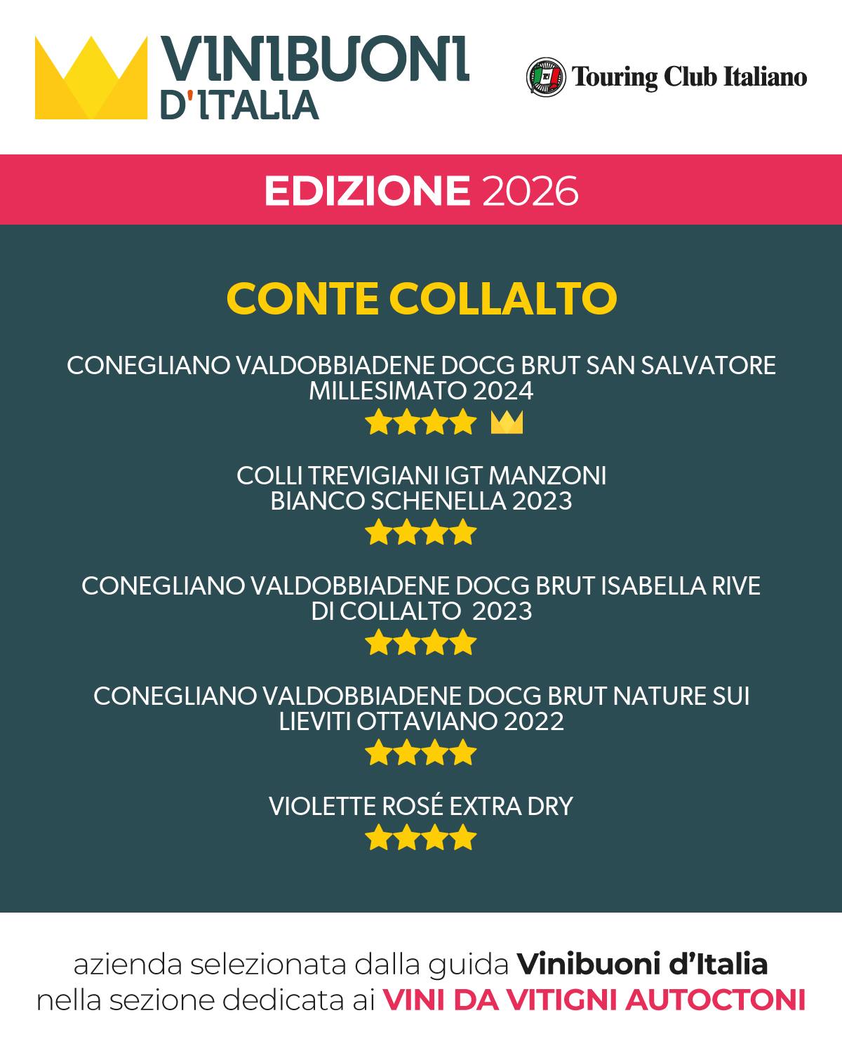 Il nostro San Salvatore Conegliano Valdobbiadene Prosecco Superiore DOCG Brut ha ottenuto la prestigiosa Corona assegnata dalla guida Vinibuoni d’Italia. Questo riconoscimento viene assegnato ai vini che hanno ottenuto i punteggi più alti nelle commissioni di selezione. Una graditissima conferma per uno dei nostri vini più identitari