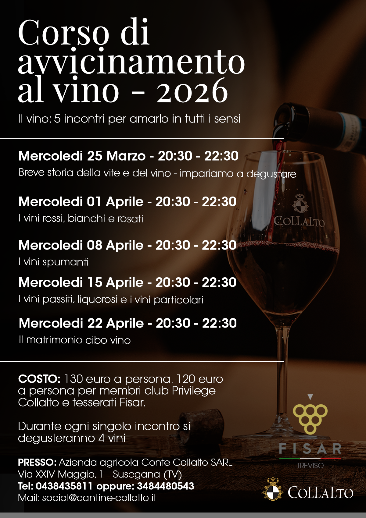 Con grande piacere vi proponiamo una nuova edizione del corso di avvicinamento al vino, ideato in collaborazione con Fisar Treviso.